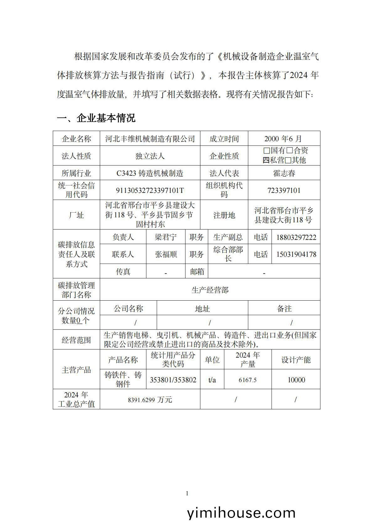 河(he)北豐維機(ji)械(xie)製(zhi)造(zao)有限公(gong)司溫(wen)室(shi)氣(qi)體(ti)排放報告